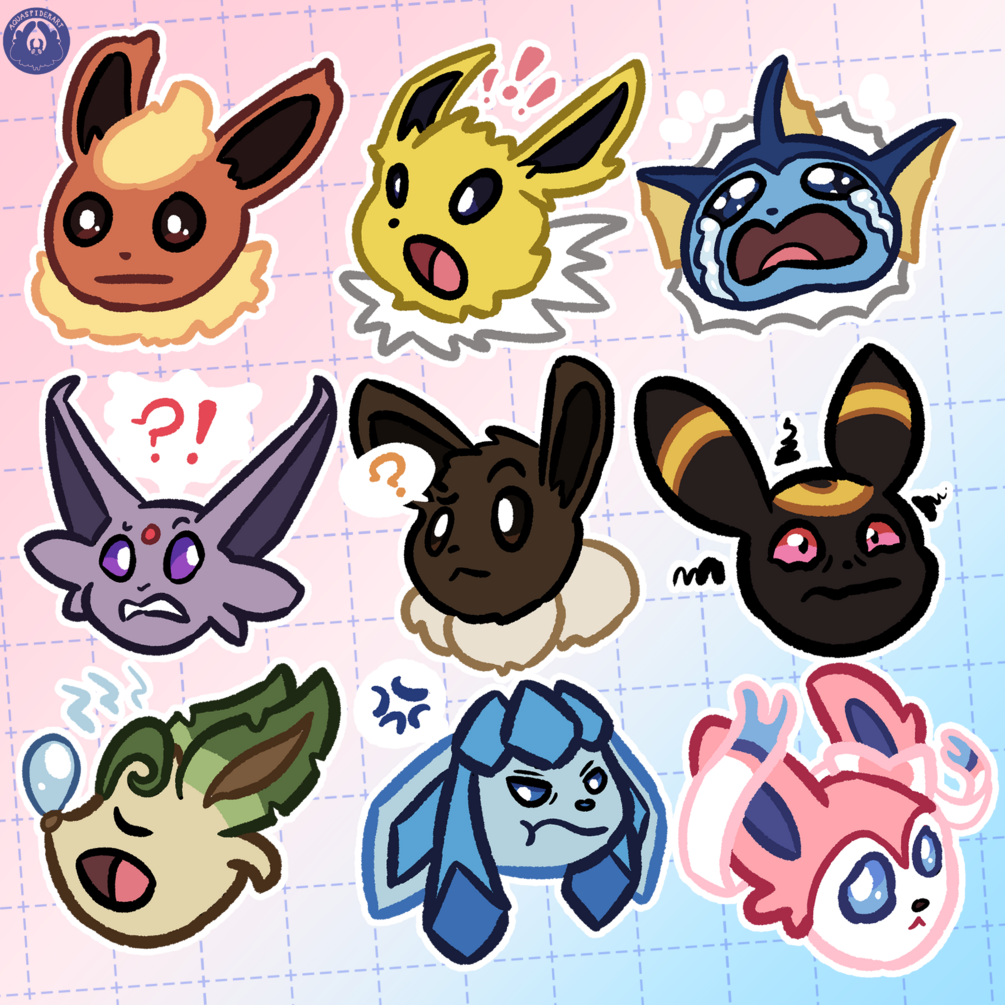 A set of eeveelution emotes for use on your discord server, twitch chat, or wherever else you feel like using them!! Had fun making some rather silly expressions in this pack.